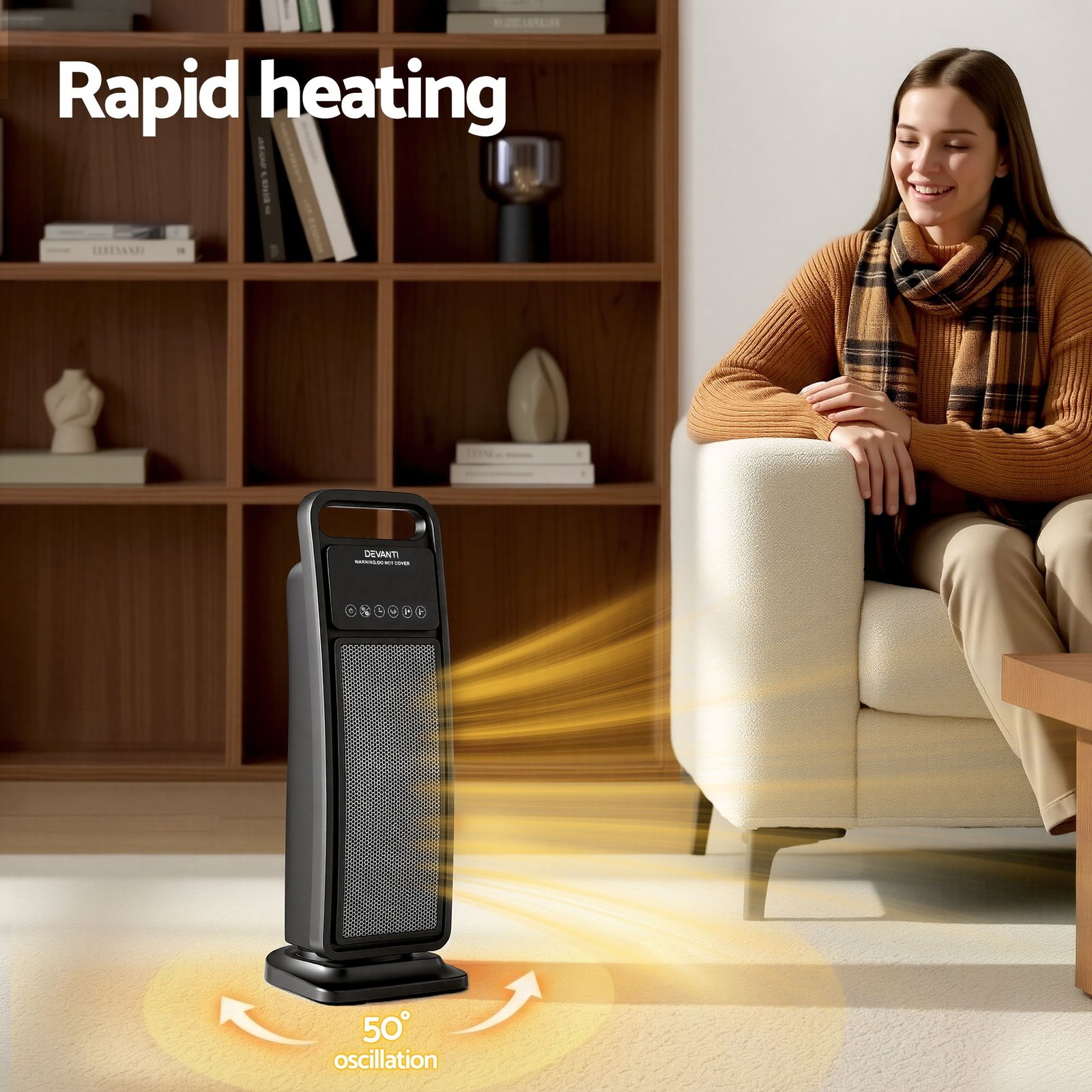 Devanti 2000W Ceramic Tower Heater Space Heaters Indoor Oscillating Black