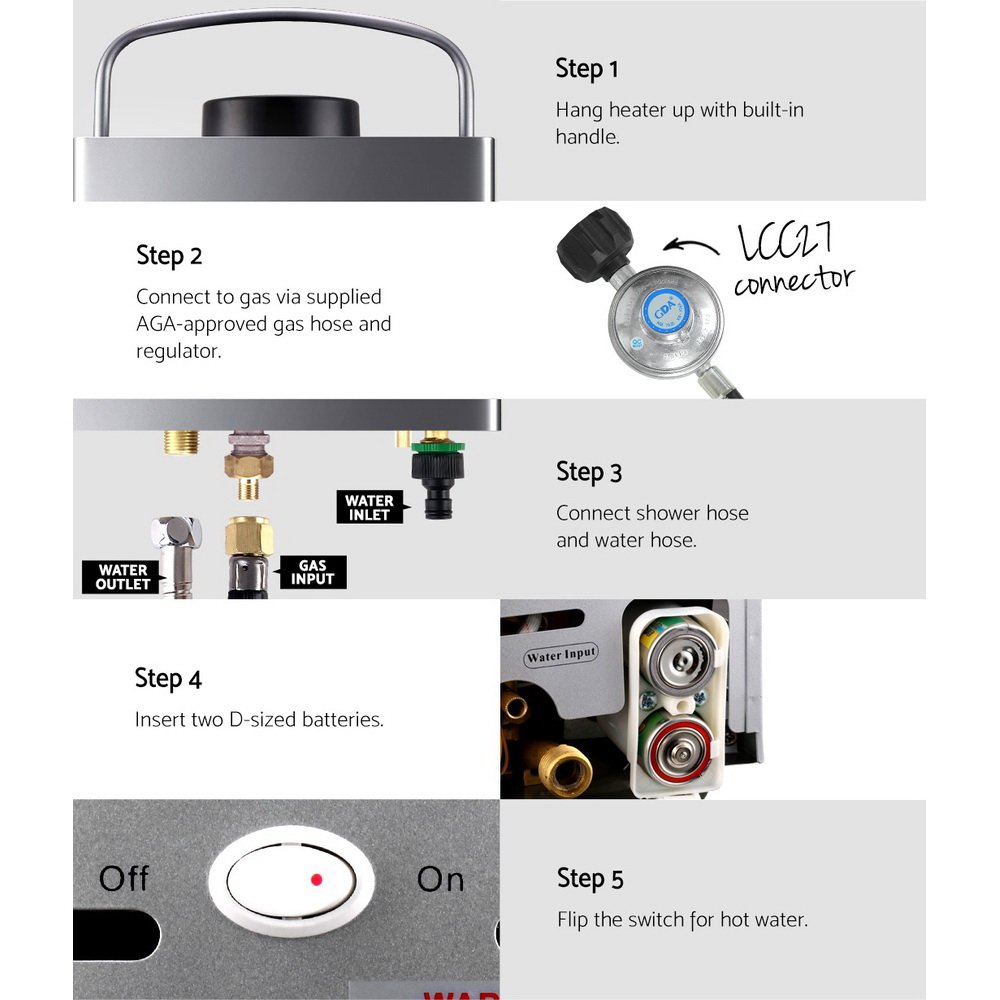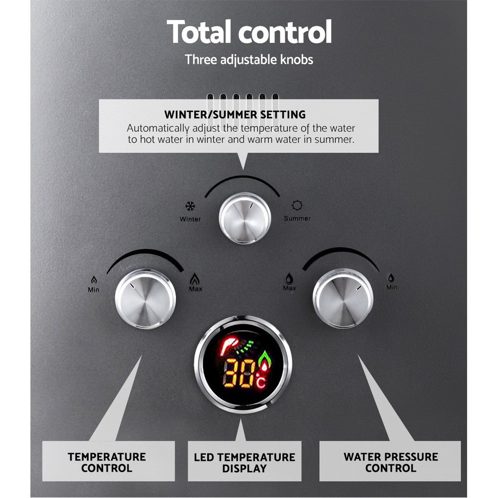 Devanti Portable Gas Water Heater With Pump LPG System Grey