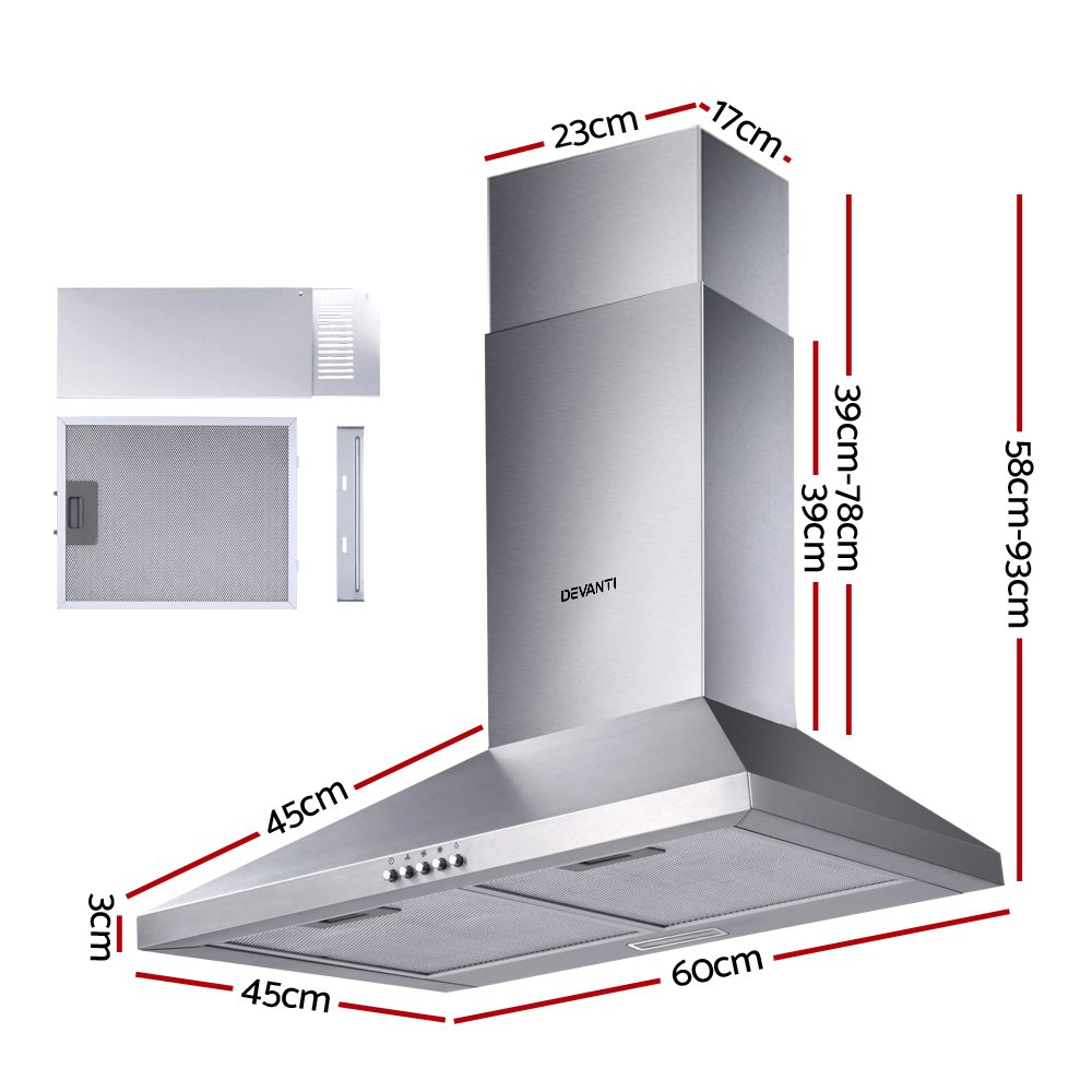 Devanti 600mm Range Hood 60cm Rangehood Stainless Steel