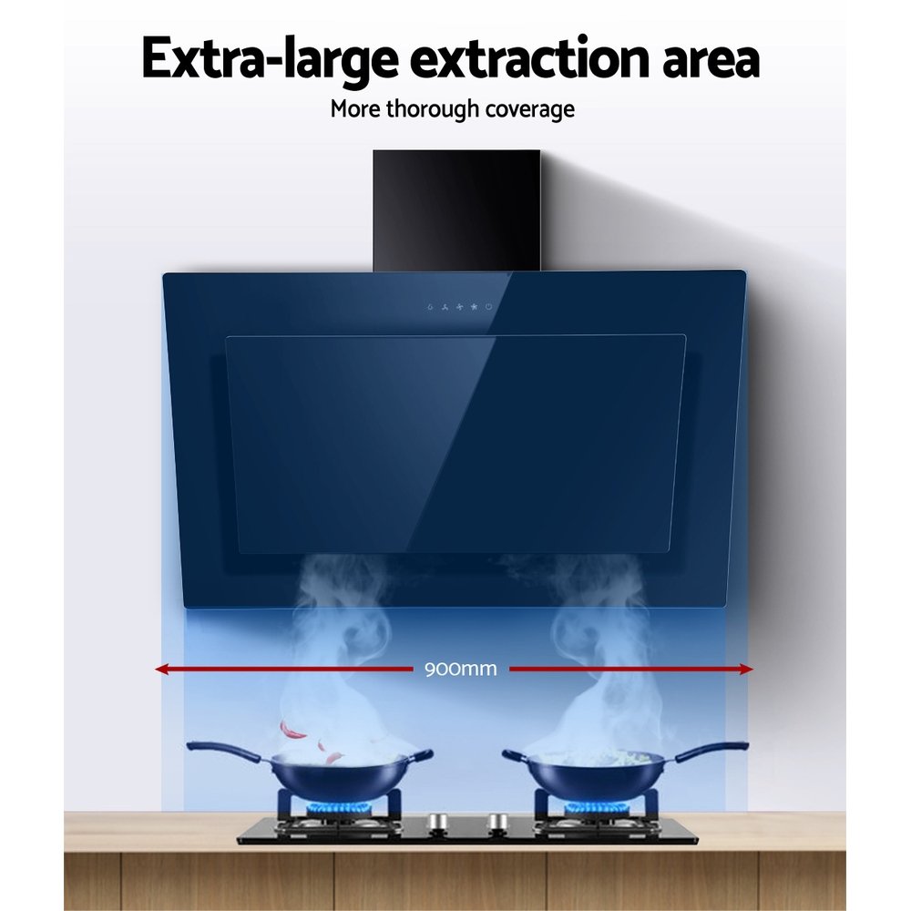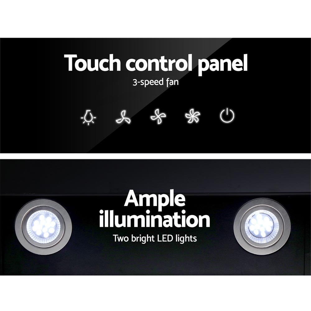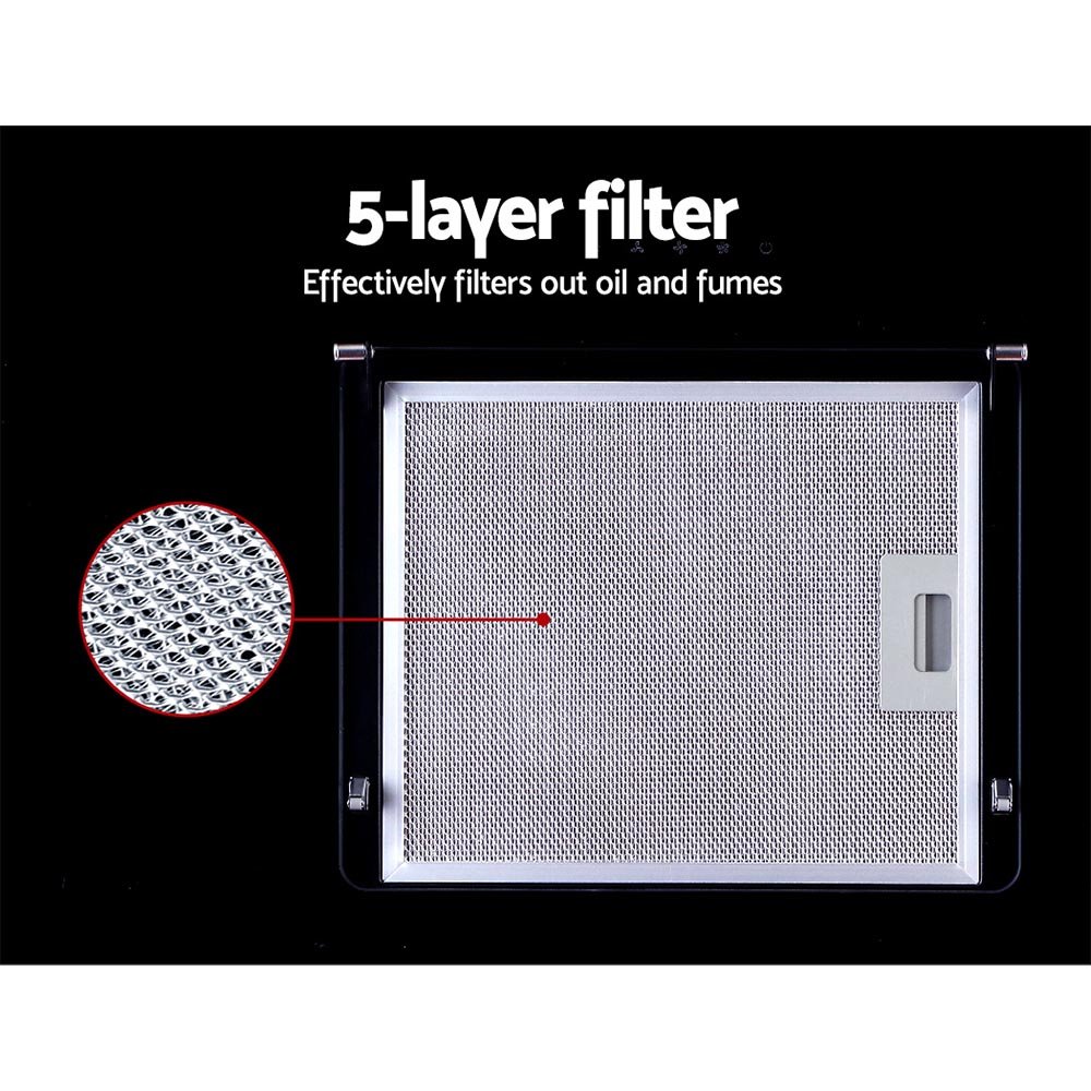 Devanti 900mm Range Hood 90cm Rangehood Glass Black