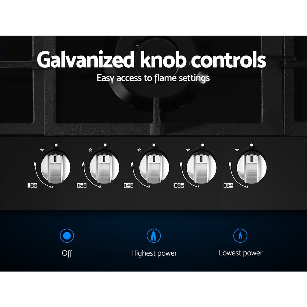 Devanti Gas Cooktop 90cm 5 Burner Black
