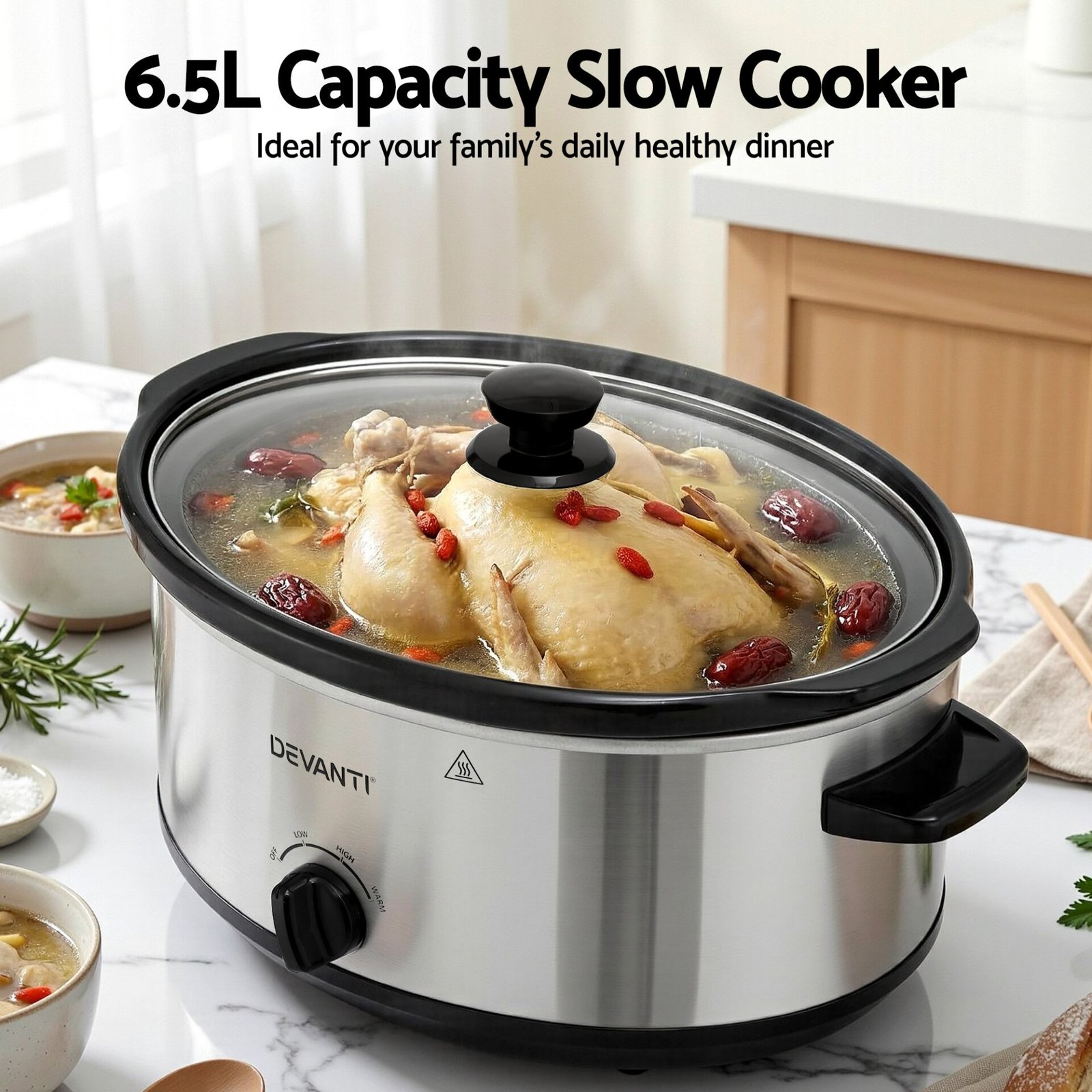 Devanti 6.5L Slow Cooker Electric Multi Cooker with 3 Heat Settings and Keep Warm Function