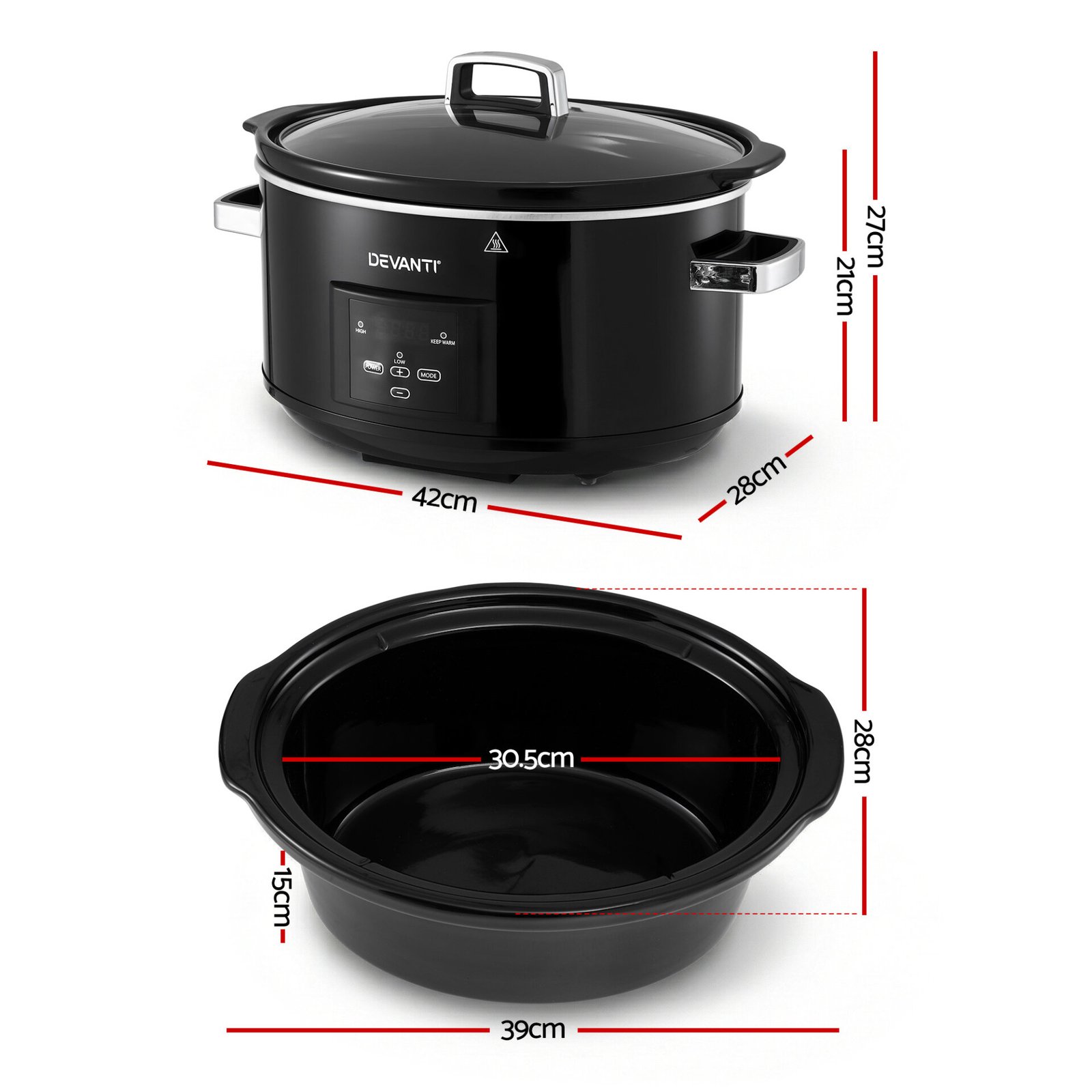 Devanti 8L Slow Cooker Electric Multi Cooker with 3 Heat Settings and Keep Warm Function