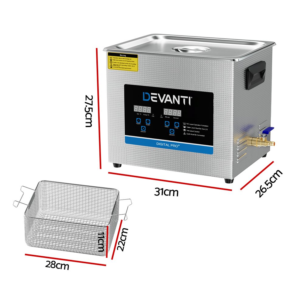 Devanti 10L Ultrasonic Cleaner Heater Cleaning Machine Timer Industrial 240W