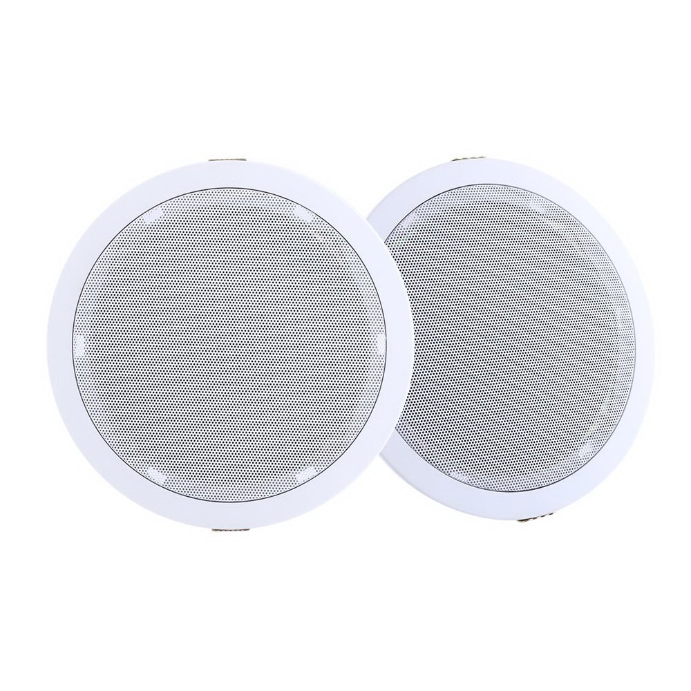 Create a clean audio setup in your home with our 6-inch Ceiling Speaker. Embedding speakers onto the ceiling allows you to hide all the messy wiring and the body of the speaker for a setup that looks clean, sleek and professional. And installation is easy and quick: simply cut a hole in the ceiling with a diameter of 193mm, then insert the speaker into the hole until the retaining spring clips snap into place at the back of the ceiling. No screws required. The speaker is also powerful at 80W per unit with a frequency range of 90-16kHz. The premium ABS enclosure is not only eco-friendly but durable for longlasting use. So create your own home theatre with our ceiling speaker and enjoy the superbly realistic surround sound.