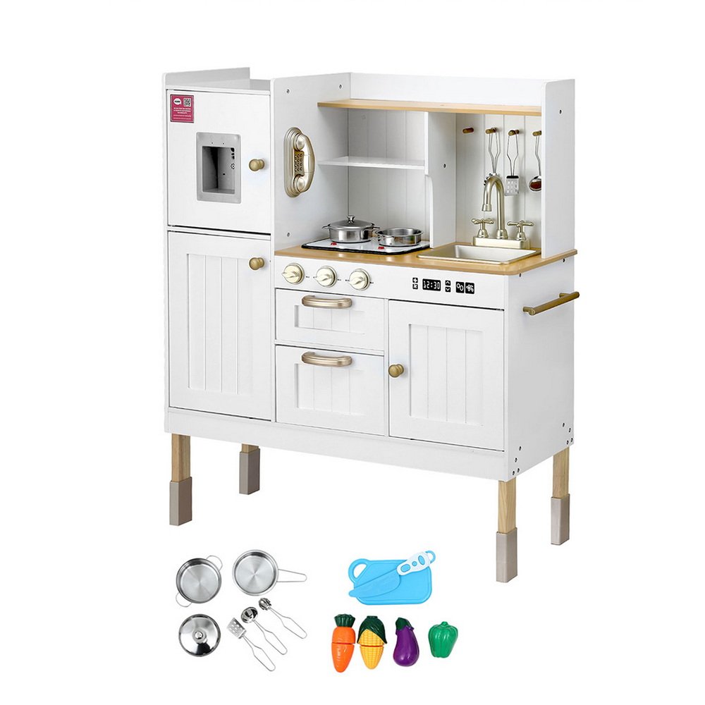 Keezi Kids Kitchen Play Set Wooden Pretend Toys Cooking Children Storage Golden