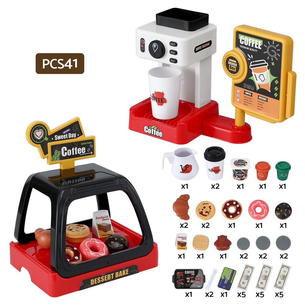 This comprehensive kids pretend play coffee shop set is the perfect recipe for hours of imaginative fun. Watch as your child’s creativity and confidence blossom while they take orders, making coffee with the realistic coffee machine toy, and serve up delightful treats to their happy customers.