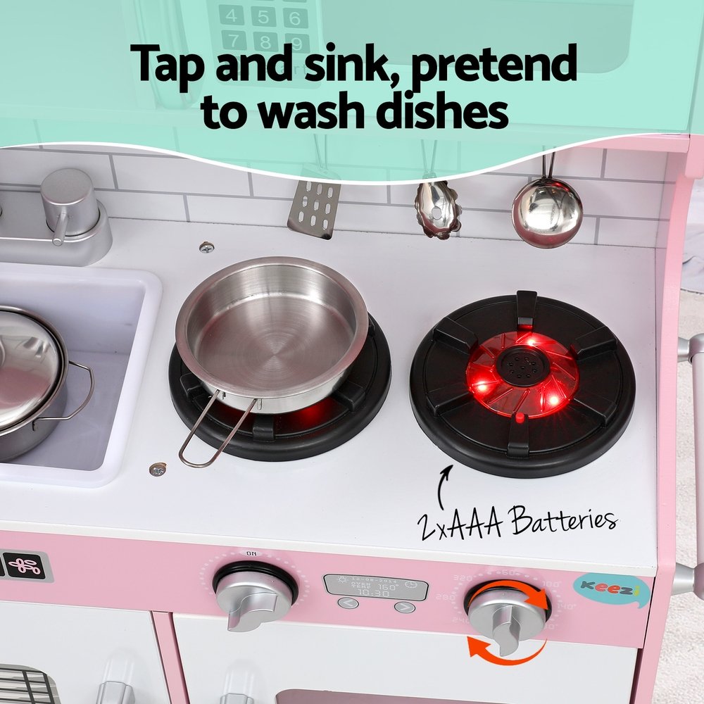 Keezi Kids Wooden Pretend Kitchen Play Set Cooking Toys Pot Ice Cup Oven Blackboard 80CM Pink