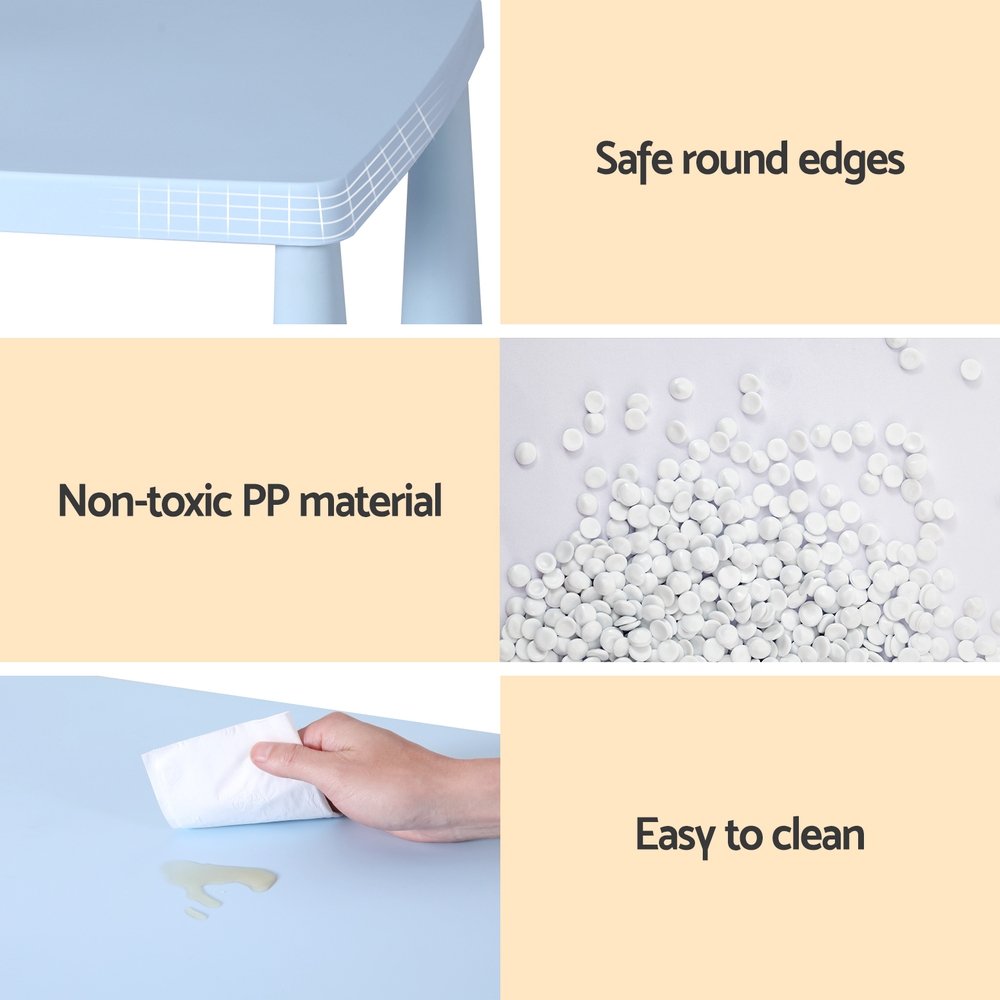 Make playtime or study time more enjoyable with the Keezi Kids Table and Chairs Set. Designed in fun blue and pink colours, this set includes one table and two matching chairs, perfect for children aged three years and above. Made from non-toxic PP material, the table and chairs are both durable and practical, ensuring long-lasting use. The smooth edges ensure safety, while the sturdy construction provides stability for various activities. Easy to assemble and simple to maintain, this set is the ideal addition to any child’s room or play area.