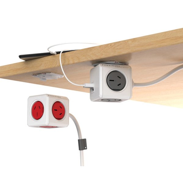 The PowerCube Extended USB is the most extensive version of the PowerCube. It has a 1.5 meter extension cord fitted to it, so it can be mounted anywhere to have a power outlet within reach. To do this, a stick-on dock is included. An ideal location is your desktop: there is no more need to duck beneath your desk to plug in your laptop! This PowerCube also includes a powered Dual USB port, so your mobile devices (including tablet computers!) can be recharged from your desktop.