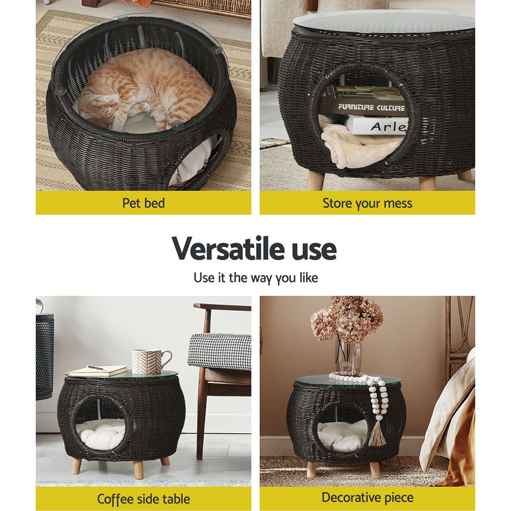 Looking for an out-of-ordinary piece for your home? You won’t get disappointed with our Gardeon coffee table. Flaunting 2-in-1 design, this piece makes a great coffee table while serving as a delightful resting for your pet. It features a simple yet glamorous design that’s sure to impress you and wow your guests. Our coffee table boasts sturdy aluminium frame construction with extra aluminium bracing, which makes it suitable for all-weather use and rust-free, and the premium handwoven PE wicker design lends this piece a tropical look and feel. It also comes with a thick tempered glass tabletop with suction pads to hold it in place. This coffee table is perfect for indoor and outdoor use. It’s elegant and stylish. Its versatile design allows you to style it in various ways. Furthermore, this coffee table is easy to assemble. It doesn’t require any tools for assembly. Stylish and practical, our Gardeon coffee table cum pet bed makes a must-have piece in every home. Purchase it today without hesitation.