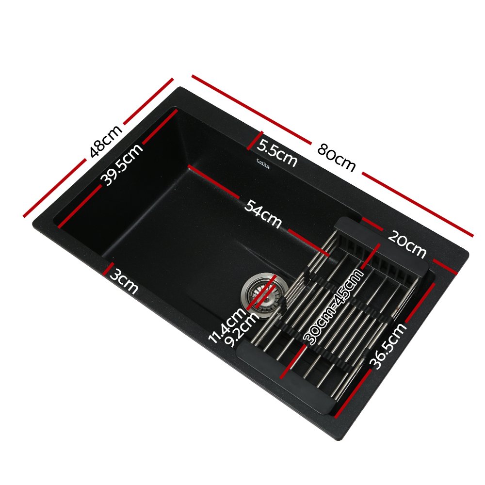 Your beautiful home certainly deserves the best of quality fittings and appliances. More so for your kitchen where meals should be prepared with safe, hygienic and food-grade equipment. That is why our Cefito Stone Sink is perfectly suited for your fine kitchen. Made of premium-quality black granite stone composite (80% granite), our 9mm thick stone sink with a silky textured surface not only look fabulous, but is also extremely durable and longlasting. Every bit of the sink is non-toxic, lead-free and highly resistant to heat, scratches, stains and dirt. Oil will not adhere to it and neither does it fade over consistent or heavy-duty use. The quality finish along with the R15 rounded corners mean the stone sink is completely easy to clean and maintain. Suitable for drop-in, flush or under mount installation, our stone sink also includes a 304 stainless steel corrosion-resistant waste strainer. With its contemporary finish, our stone sink is a definite stand-out in your esteemed kitchen.
