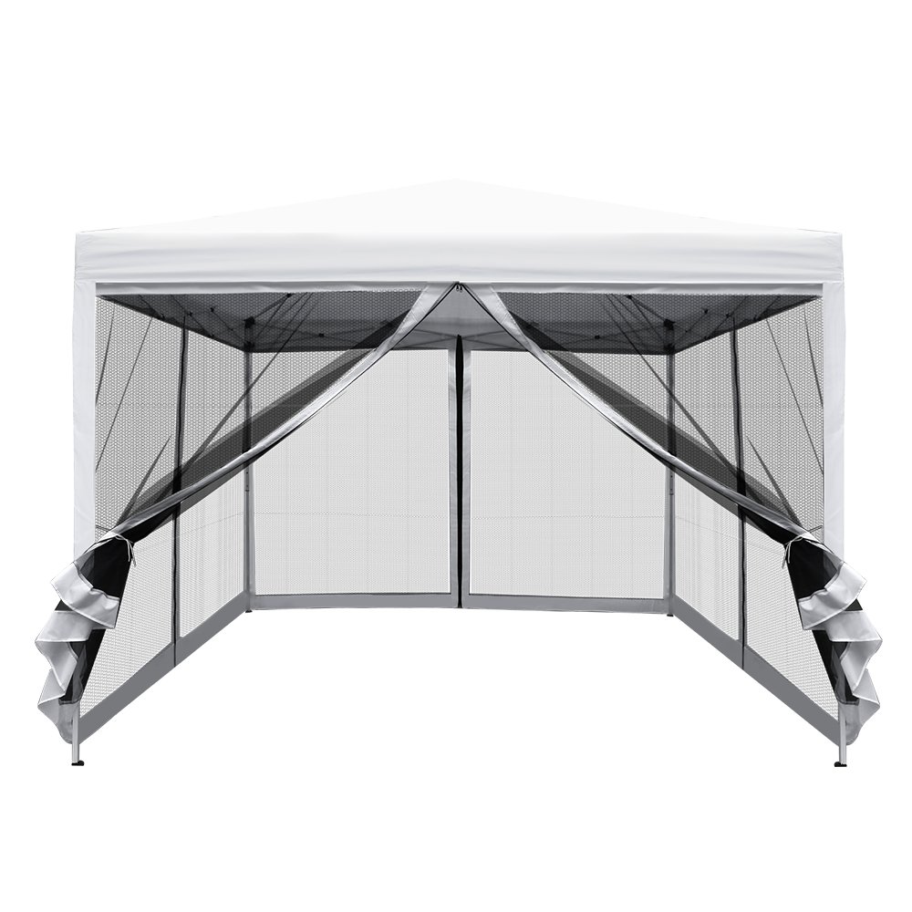 In your garden, at an outdoor BBQ or sports event, on your travelling vacation or on market days, our INSTAHUT Pop-up Gazebo is your ideal solution for instant cover outdoors. With a wide roof coverage of 300cm by 300cm, the exceptional cover is made of durable silver coating 210D Oxford fabric that is both UV and water resistant. Height can be easily adjusted with four pre-sets, ranging from 232cm to 250cm. It also features two zipped entrances and insect-proof mesh walls. Plus, the powder-coated steel frame, cross-bar frame work and steel supporting legs mean that this gazebo is no easy pushover from man or weather. The gazebo can be set up in minutes and kept away just as quickly in your car boot, van, trailer, garage or shed. Thanks to its portable design, quick and convenient hook and loop attachments, fast release and fasten rings and handy nylon inserts for hassle-free use.