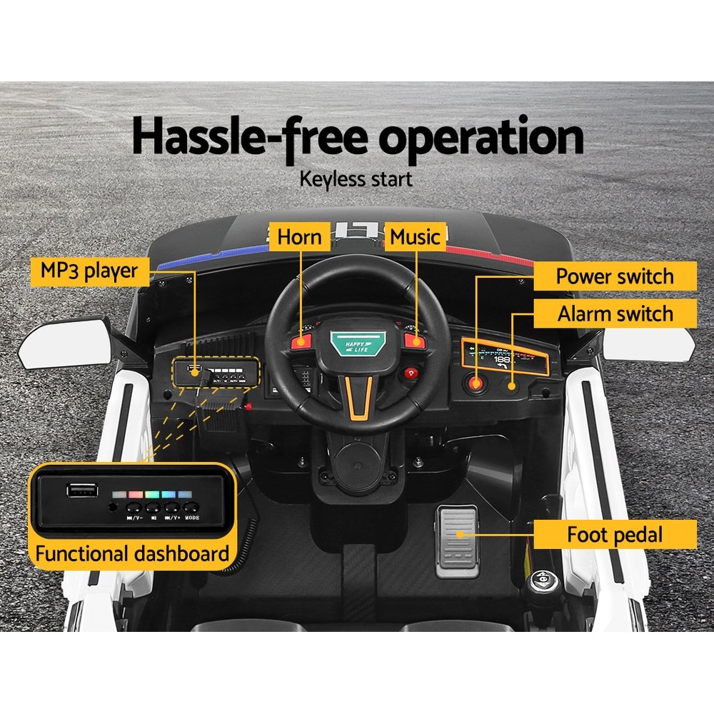 Whether your kids are on spy missions or role-playing as police, our Rigo kids ride on police cars are sure to be a hit. They are a joy to ride, help foster gross motor skills, and look like real police cars. Boasting brilliant looks, performance, and charisma, our ride on police-inspired car features a robust exterior design with a brilliant lacquer finish and solid build. It has powerful 50W twin motors for exhilarating performance, premium slip-resistant tyres, flashing police lights, smooth acceleration to prevent sudden jerks and stops, and a spacious seat with an adjustable safety belt for maximum comfort and protection. Plus, it has open roof design, lockable doors, smart keyless start, functional dashboard, and other functions like MP3 player, horn, power switch, alarm switch, high/low speed mode, and a foot pedal for a real-like driving experience. Our ride on police car is battery operated with up to 8-12 hours runtime per full charge and comes with a SAA-approved charger for safer and faster charging. With two control modes, the adult remote-control function and EN71 Standard Safety of Toys certification ensures the safety of your child, and the hidden handle makes it easy to carry the ride on car. Purchase this real-like and robust Rigo police-inspired ride on car and watch your kids having unlimited fun with their mates.