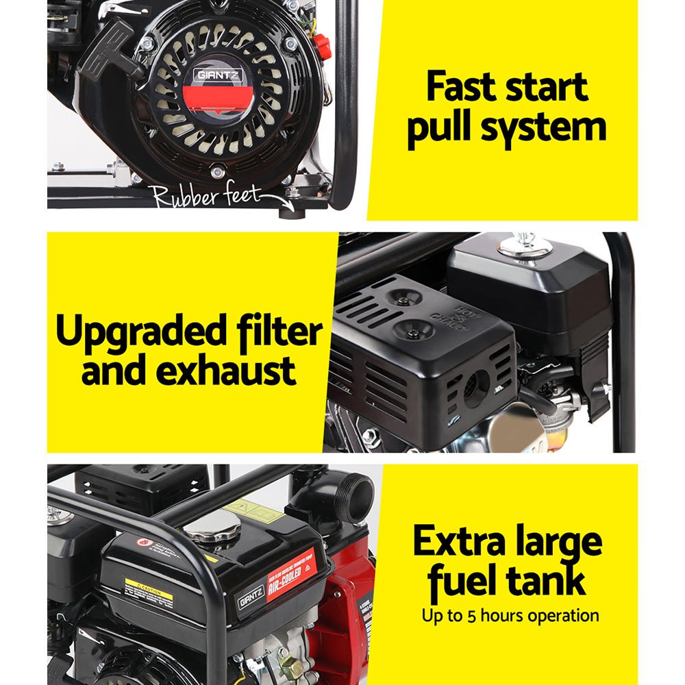 The GIANTZ 2-inch High Flow Petrol Water Pump provides outstanding performance for general water pumping applications. Whether it’s for applications such as heavy duty cleaning, irrigating the garden or pumping out a flooded cellar, you’ll be amazed with the versatility and performance our monster Water Pump.